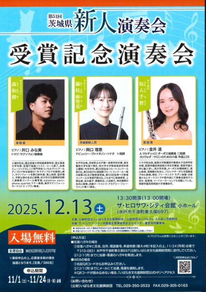 2025年9月28日に開催した「第51回茨城県新人演奏会」にて、見事受賞に輝いた3名の演奏を披露します。